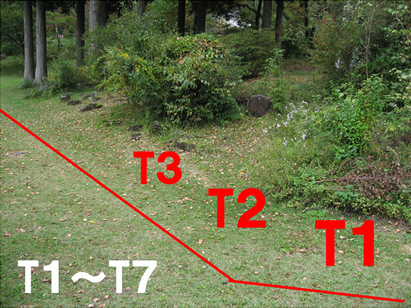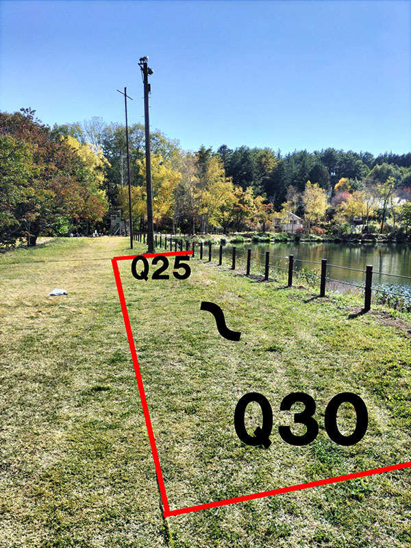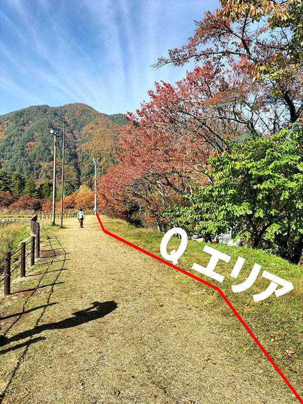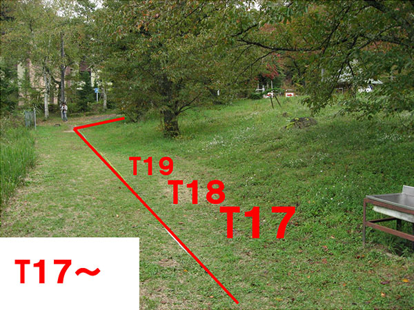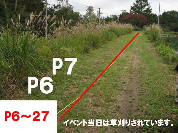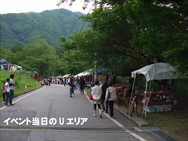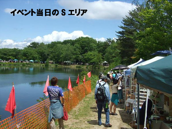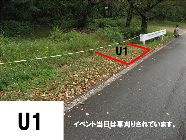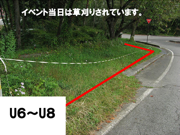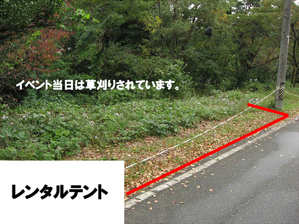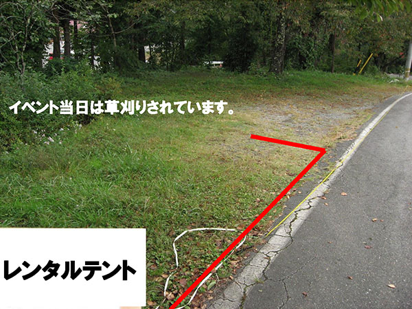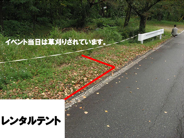 通路幅 が大変狭いエリアのため、ブースサイズは間口3.5 m×奥行き2.5mとなり、3mテントで出店予定の方は後ろの斜面に足を出してテントを設置していただく必要がありますので、その準備をお願いいたします。