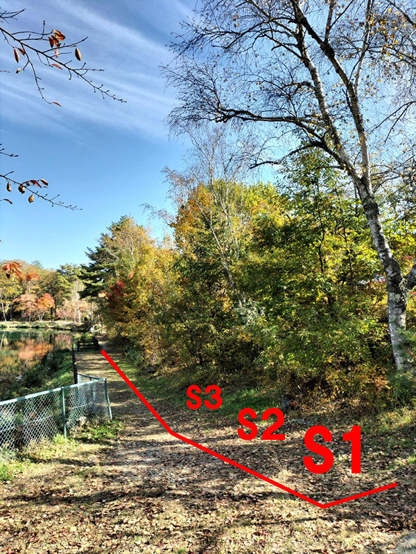 通路幅が大変狭いエリアのため、ブースサイズは間口3.5 m×奥行き2.5mとなり、3mテントで出店予定の方は後ろの斜面に足を出してテントを設置していただく必要がありますので、その準備をお願いいたします。